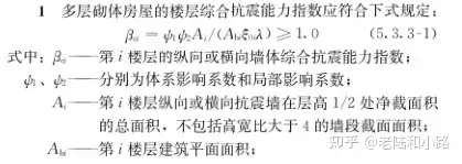 5.3.3 抗震能力指数要在两个主轴方向分别计算,有明显扭转影响时,取扭转效应最大的轴线计算。对于A类建筑,抗震验算一般采用的具体方法,与抗震设计规范的方法相比,有所简化。对于B类建筑,也可参照A类的简化方法进行验算,但应计入后续工作年限的不同,计算参数有所变化。由于采用以楼层综合抗震能力指数表达的简化方法进行规则的多层砌体和多层钢筋混凝土A类和B类建筑的抗震验算,已经经过了历次地震的检验,因此,本规范仍把该简化方法作为首选方法。
